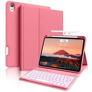 BQDIYOO Case for iPad Air 11-inch M3/M2 (2025/2024), Folio Cover with Pencil Holder for iPad Air 7th 6th 11"/Air 5th 4th Gen 10.9 inch Case with 7-Color Backlit Detachable Bluetooth Keyboard, Red