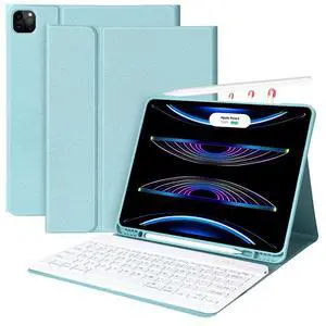 ZOPSGYU Case with Keyboard for iPad Air 11 Inch M3/M2 2025/2024, iPad Air 5th/4th Generation 10.9 Inch 2022/2020, Magnetic Detachable Bluetooth Keyboard, Soft Cover with Pencil Holder, Sky Blue