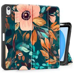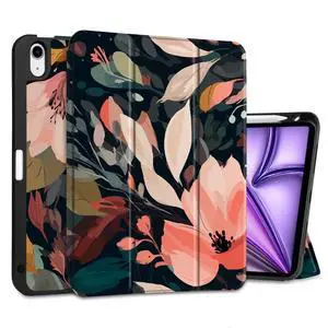 DONGKE for iPad Air 11 Inch Case M3 2025 / M2 2024 & iPad Air 5th 2022 / 4th Generation 2020 10.9 Inch, Ultra Thin Soft TPU Back Cover with Pencil Holder Support Auto Wake/Sleep, Painted Florals