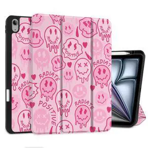 DONGKE for iPad Air 13 Inch Case M3 2025, M2 2024 - [Built-in Pencil Holder] Slim Trifold Stand Shockproof Protective Cover with Soft TPU Back Support Auto Sleep/Wake - Melting Faces