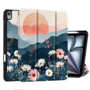 DONGKE for iPad Air 13 Inch Case M3 2025, M2 2024 - [Built-in Pencil Holder] Slim Trifold Stand Shockproof Protective Cover with Soft TPU Back Support Auto Sleep/Wake - Daisie