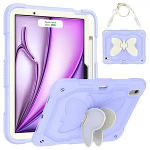 HOGENL Case for iPad Air 11 inch (M2 and M3) for Kids Girls with Stylus Holder, Cover for iPad Air 6th 2024/2025 with Butterfly Stand, Carrying Strap, Heavy Duty Full Body Protective - Purple