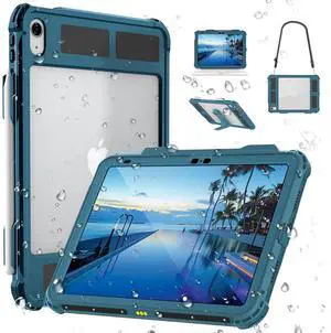 MRUOZRUI Table Waterproof Case Compatible with iPad (A16) 11th 2025/10th Gen 10.9 inch, Shockproof Drop Proof Full Body Cover Built-in Screen Protector, Pencil Holder, Stand, Shoulder Strap Teal