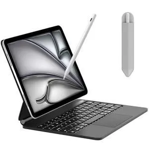 GOOJODOQ Magnetic Keyboard Case for iPad Air 13 inch 2025 M3/2024 M2,iPad Pro 12.9 inch (6th/5th/4th/3rd) Gen(2018-2022),Upgraded Trackpad with LCD Display & 7 Color Backlit Bluetooth Keyboard -White