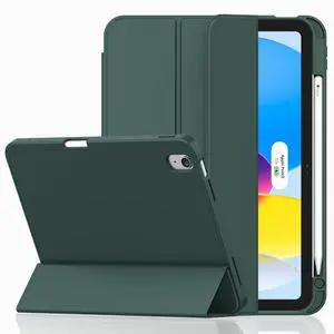 iMieet Case for iPad (A16)/iPad 10th Generation [11-Inch 2025/10.9 Inch 2022], Trifold Stand Smart Cover with Pencil Holder and Soft TPU Back, Supports Touch ID(Midnight Green)