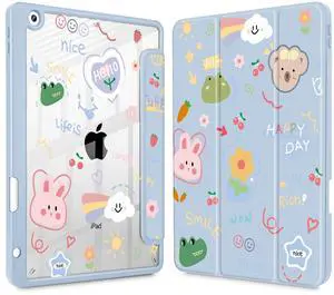 May Chen for iPad 9th Generation with Pencil Holder, iPad 8th/7th Gen Case 10.2-inch, [Penceil Holder] Trifold Stand Auto Wake/Sleep Clear TPU Protection Back Cover, Cartoon Stick Figure