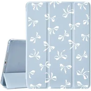 Tuiklol for iPad 10.2 case 2021 Gen 9th Release Built in Pencil Holder - Trifold Stand-Auto Wake/Sleep TPU Protection Stand Clear Back Cover for 2020 2019 [8th/7th] iPad 10.2 Case,Bow-Purple