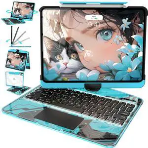 May Chen Case for iPad Air 11 inch (M3 2025/M2 2024) 7th/6th Gen/iPad Air 10.9 inch 5th/4th Gen 2022 2020 with Pencel Hodel, Trifold Stand Auto Wake/Sleep TPU Stand Back Cover, Turquoise Petals