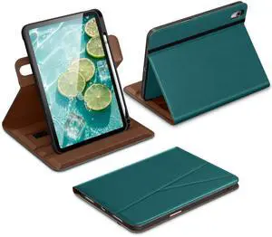 DTTO for iPad A16 Case, iPad 11th / 10th Generation Case (2025/2022), 360 Degree Rotating Premium Leather Folio Stand Cover with Pencil Holder, Green