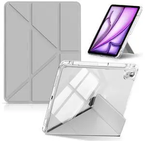 CeiLarv Protective Case for iPad Air 11 Inch M3 2025 & M2 2024 Stand Case Transparent Hard Back Cover for iPad Pro 11" 2018 / iPad Air 10.9" 2022/2020 Pencil Storage Leather Cover - Gray