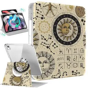 Kidcube for iPad Air 11 Inch Case M3/M2, Air 5th/4th Generation Cases 10.9'', Pro 11'' 2020 - Women Girl Aesthetic Cute Rotating Stand Folio Cover with Pencil Holder & Card Slot Girly Sun Moon Stars