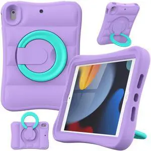 MRWHO Kids Case for iPad 9th 8th 7th Generation 10.2 inch Lightweight Flexible Shockproof Rotating Stand Handle Rugged Cover for iPad 9 8 7 Gen Girls Boys, Purple