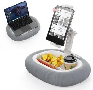 Tablet Kindle Pillow Stand Holder Free Adjustment with 3 Divided Trays Fit 4''-13'' Phone Kindle iPad Holder Stand Ultra Stable for Bed Soft Plus Fabric Dust Cover Lap Desk Kindle Accessories Gray