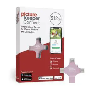 Picture Keeper Connect for iPhone, Android, USB-C, PC & Mac - 512GB USB Stick Backup for Photos, Videos, Flash Drive Memory Backup - 512GB, Pink