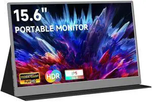 qaf 15.6 Inch Portable Monitor for Laptop, FHD 1080P USB-C HDMI Computer Monitor 100% sRGB HDR IPS Display, Ultra-Thin Travel Second Screen Compatible with Laptop Mac PC Phone PS5 Xbox, Black