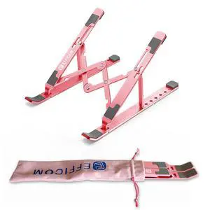 EFFICOM Laptop Stand for Desk, Ergonomic Lap Riser, Portable Laptop Stand, Aluminum Lightweight Foldable Notebook Support, Compatible with Laptop 10-15.6'' and Tablet, Phone (Pink)