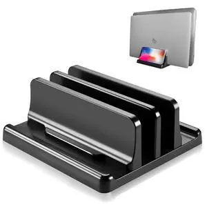 JIMEJV Vertical Laptop Stand, Adjustable Width Desktop Organizer for MacBook, iPad, iPhone, Black (Black)