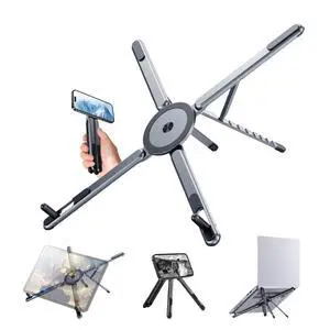 Ymuyus Multi-Device Magnetic Stand Compatible with Magsafe, Foldable Aluminum Alloy, 3-in-1 Laptop/Tablet/Phone Holder, Supports Handheld or Desktop Mode, Portable Travel Design, Gray