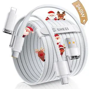 SHEZI Braided USB C to USB C Cable, 240W 4 in 1 Charging Cable 5FT, Fast Charging USB A/C to Lightning/Type C for iPhone 17 16 15 14 Pro Max/MacBook/iPad/Samsung, Multi Charger Cords for All Devices