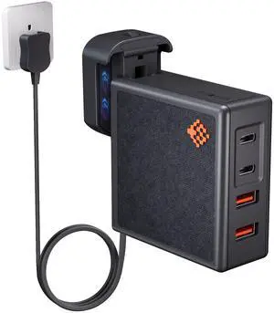 GAN USB C Charger: 100W,96W,87W,85W,67W AC Adapter - 4 Port Fast Compact PD Wall Block - Type-C High Speed Charging - Travel Adapter for MacBook,Surface,Lenovo(+5 ft Extension Cable)