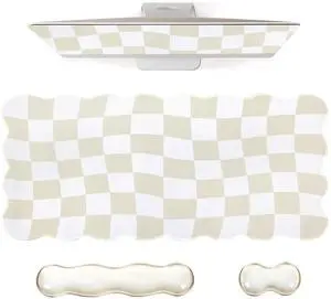 L-SPOUTTO Beige Checkered Mouse Pad Set,Scalloped XXL Desk Mat + Ergonomic Mouse Wrist Rest + Gel Keyboard Wrist Rest for Keyboard 65%/75%,3in1 Large Desk Pad for Desktop Home Office Computer Game