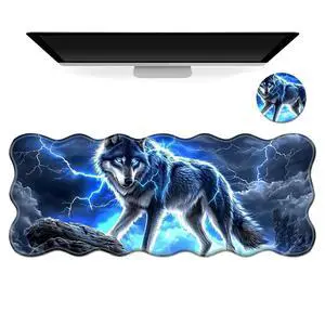 Tudguiloae Large Gaming Mouse Pad with Coaster, Edge Stitching Keyboard Majestic Blue Wolf Mouse Mat for Desk, 35.4" x 15.75" Household Extended Desk Pad for Desktop, Non-Slip Rubber Base