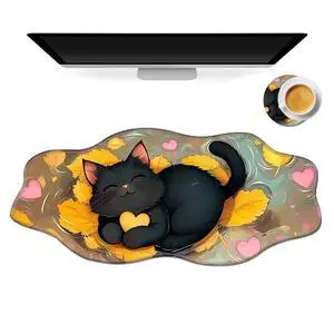 Tudguiloae Large Gaming Mouse Pad with Coaster, Edge Stitching Keyboard Leaves Cute Cat Mouse Mat for Desk, 35.4" x 15.75" Household Extended Desk Pad for Desktop, Non-Slip Rubber Base