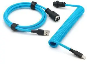 KCSJXF Reverse Coiled USB-C Keyboard Cable, Double-Sleeved Mechanical Keyboard Cable with Detachable Metal Aviator, 1.5M USB-C to USB-A (Light Blue)