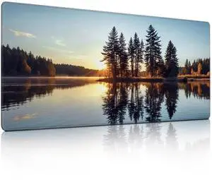 Sunset Lake & Trees Mouse Pad, Scenic Sunset Lake Mousepad - Large Non - Slip Desk Mat for Office, PC & Laptop - 35.5"x15.7" x 3mm