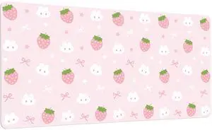 Idocolors Pink Strawberry Desk Mat, Cute Extended Gaming Keyboard Mouse Pad, Large Office Desk Cover Mat Pad Deskmat, Non-Slip Leather Home Office Desk Mat Protector 27.6"x13.8"