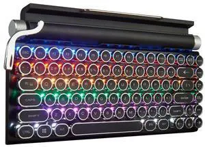 GUAZI STORE 83-Key Mechanical Keyboard - Retro Typewriter Wireless Bluetooth Gaming Keyboard, Anti-Ghosting Blue Switch (Black)