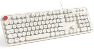 Meidosa Wired Computer Keyboard, Retro Typewriter Keyboard Full Size Round Key, Plug and Play USB Keyboard for PC, Laptop, Desktop, Windows (Milk White)