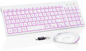 SABLUTE Wireless Keyboard and Mouse Combo Backlit - Compact Quiet Keyboard with RGB Mouse, Rechargeable, Slim, Sleep Mode, Portable Cordless Keyboard Mouse Set for Mac, Windows, Laptop (Polar White)