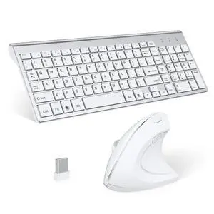 2.4GHz Wireless Vertical Ergonomic Mouse and Keyboard Combo Ultra-Thin Portable Size for PC Desktop Computer Laptop Mac Tablet (A) (Right) (White)