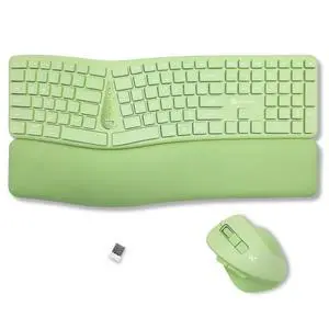 X9 Green Ergonomic Keyboard Mouse Wireless Combo - Type Comfortably Longer - 2.4G/Bluetooth Split Keyboard, Multi-Device, Soft Wrist Rest, Rechargeable, Silent Ergo Keys - Laptop, PC, Mac,iOS,Android