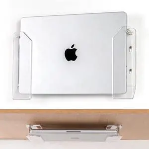 SIPRDE Wall Mount Laptop Holder - Also Available as an Under Desk Laptop Mount, Clear Acrylic, with Adhesive & Screw, for Macbooks, Surface, Keyboards, Switch, Tablets & More