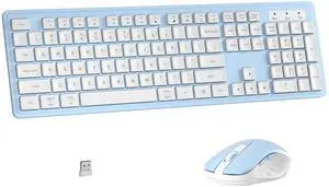 MPTOG Wireless Keyboard and Mouse Combo, Full-Size 104-Key Office Keyboard with 15 Function Keys, Numeric Keypad, Single USB Receiver, Compatible with PC and Laptop(Blue White)
