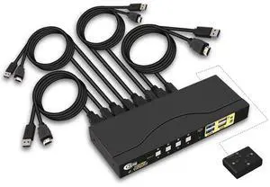 HDMI KVM Switch 4 Computers 4K@60Hz 2K@120Hz, Simulation EDID, Camgeet 4 Port USB3.0 KVM Switches for 4 PC Share 1 Monitor and Keyboard Mouse Printer,with Wired Remote,12V Power Adapter and 5 Cables