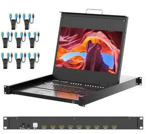 1U Rack Mount KVM Console, Arvitek 17.3" LCD Monitor KVM Switch 8 Port HDMI w/Cables, 1080P, Built-in Keyboard Touchpad, Fits 19" Rackmount Cabinet (Depth 600810mm)