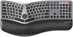Backlit Bluetooth Ergonomic Keyboard, ProtoArc EK01 Plus Full Size Wireless Split Keyboard with Dual Bluetooth and USB, Cushioned Wrist Rest, Rechargeable for Windows/Mac/Android, Grey Black