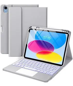 KVAGO ipad 10th/11th Generation case with Keyboard, 7 Colors Backlit, Multi-Touch Trackpad,Portrait/Landscape, Magnetic Detacha ipad a16 case with Keyboard Case, Black