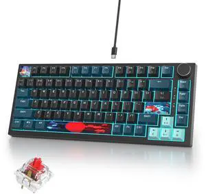 iRoboosta 75% Mechanical Gaming Keyboard, Hot Swappable RGB Backlit Custom With Knob, Gasket Mount USB Wired, 82 Keys Black Blue Linear Red Switch (82 Black Blue)
