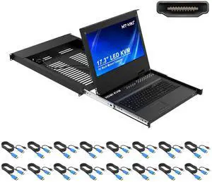 MT-VIKI Rack Mount KVM HDMI with 17.3'' LCD Monitor, 1080P Support OSD/Hotkey, Included 16 KVM Cables+Keyboard + Touchpad, Fit 1U 19'' Rack
