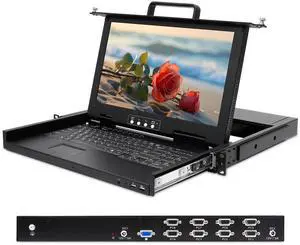 Rack Mount KVM Console for 24-Inch Deep Server Cabinet, 1U Rackmount Drawer with Monitor and Keyboard, FHD 1920x1080, 8 Port VGA KVM Switch, Dual Power Redundancy,OSD Hotkey Button Switching