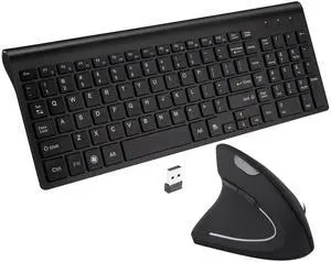 Fonicer Left Handed 2.4GHz Wireless Vertical Ergonomic Mouse and Keyboard Combo Ultra-Thin Portable Size for PC Desktop Computer Laptop Mac Tablet, Black
