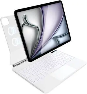 CSZZACME for iPad Air 13 inch case Keyboard M3 2025 & M2 2024,Magic Keyboard for iPad Pro 12.9 (6th,5th,4th,3rd Gen),Magnetic Attach,Multi-Gesture Trackpad,7-Color Backlit,Shortcut Keys,White