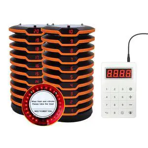 Restaurant Pager System 20 Coaster Pagers and Beepers, Restaurant Beepers Buzzers System with Vibration Flashing Buzzer Queue Wireless Calling System for Food Truck Church Nursery Coffee Shop Bar