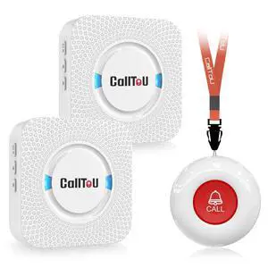 CallToU Elderly Monitoring Call Button Wireless Caregiver Pager Smart Senior System with Light Personal Buzzer Alarm 2 Portable Transmitters 1 Plugin Receiver
