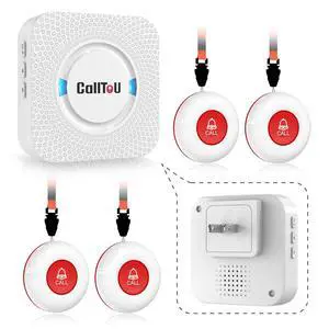 CallToU Caregiver Pager Wireless Call Button Smart Bell Alert System for Elderly Home Patient Seniors Nurse 4 Portable Waterproof Transmitters 1 Plugin Receiver