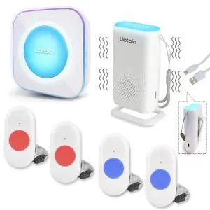 LIOTOIN Caregiver Pager Wireless Alert System - Portable Bell for Home/Elderly/Patients/Seniors - 4 Waterproof Buttons, 1 Portable Receiver, 1 Plugin Receiver